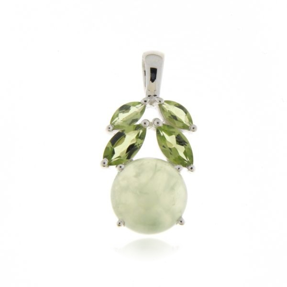 De zilveren hanger heeft een cabouchon geslepen edelsteen. De vorm van de edelsteen is rond met afmeting van 11 mm.