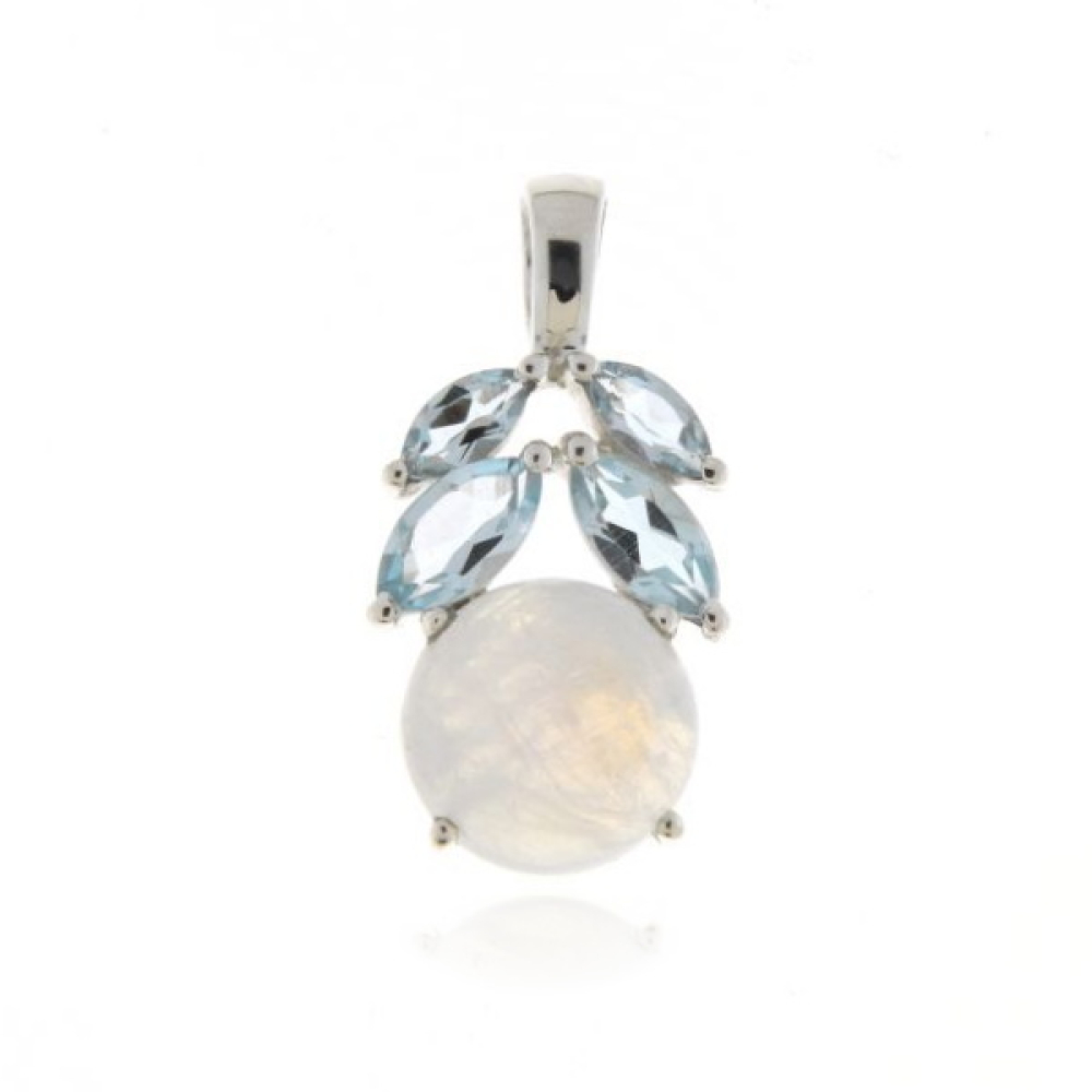De zilveren hanger heeft een cabouchon geslepen edelsteen. De vorm van de edelsteen is rond met afmeting van 11 mm.