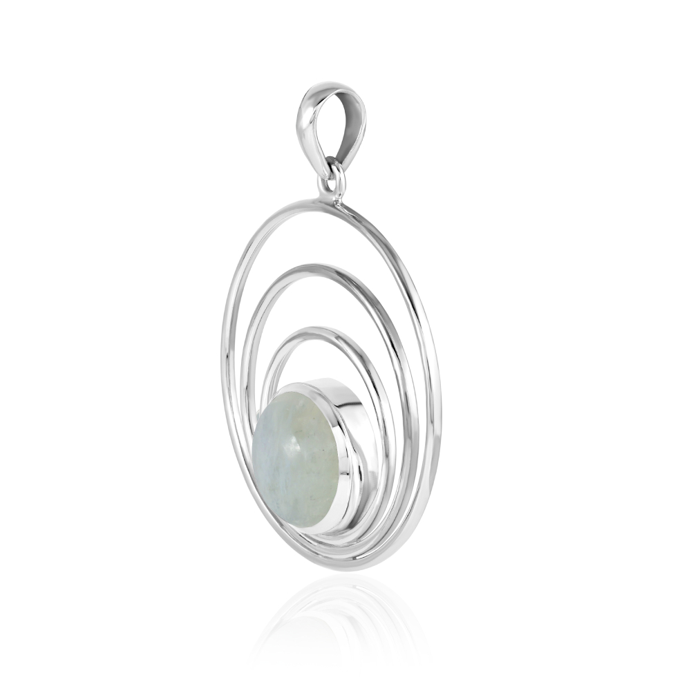 De zilveren hanger heeft een cabouchon geslepen edelsteen. De vorm van de edelsteen is rond met afmeting van 12 mm.