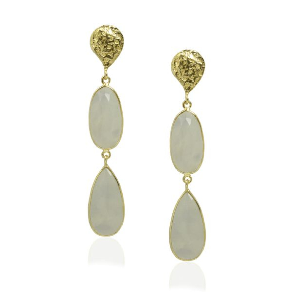 De oorstekers zijn goud op zilver en hebben facet geslepen edelstenen. De vorm van de edelstenen zijn ovaal met een afmeting van 18 x 9 mm en druppelvormig met een afmeting van 19 x 10 mm met een totale lengte van 6 cm.