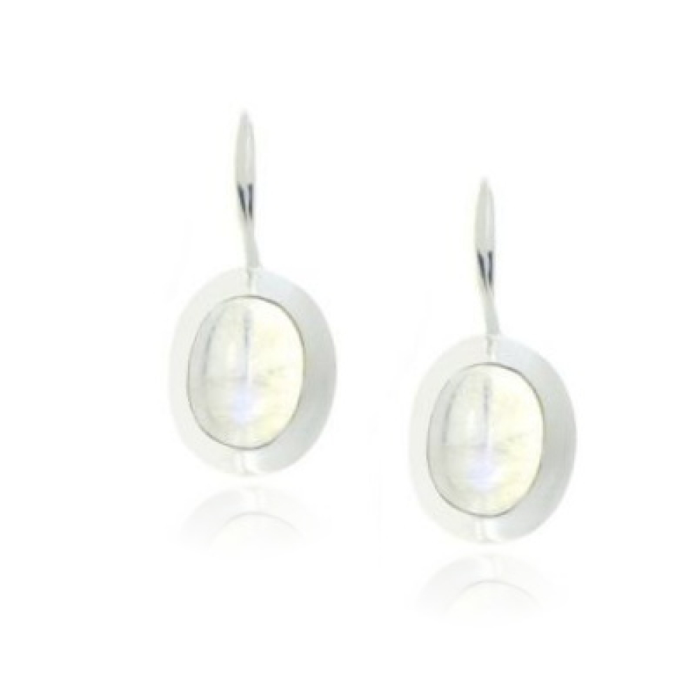 De zilveren oorhangers hebben cabouchon geslepen edelstenen. De vorm van de edelstenen zijn ovaal met een afmeting van 9 x 7 mm.