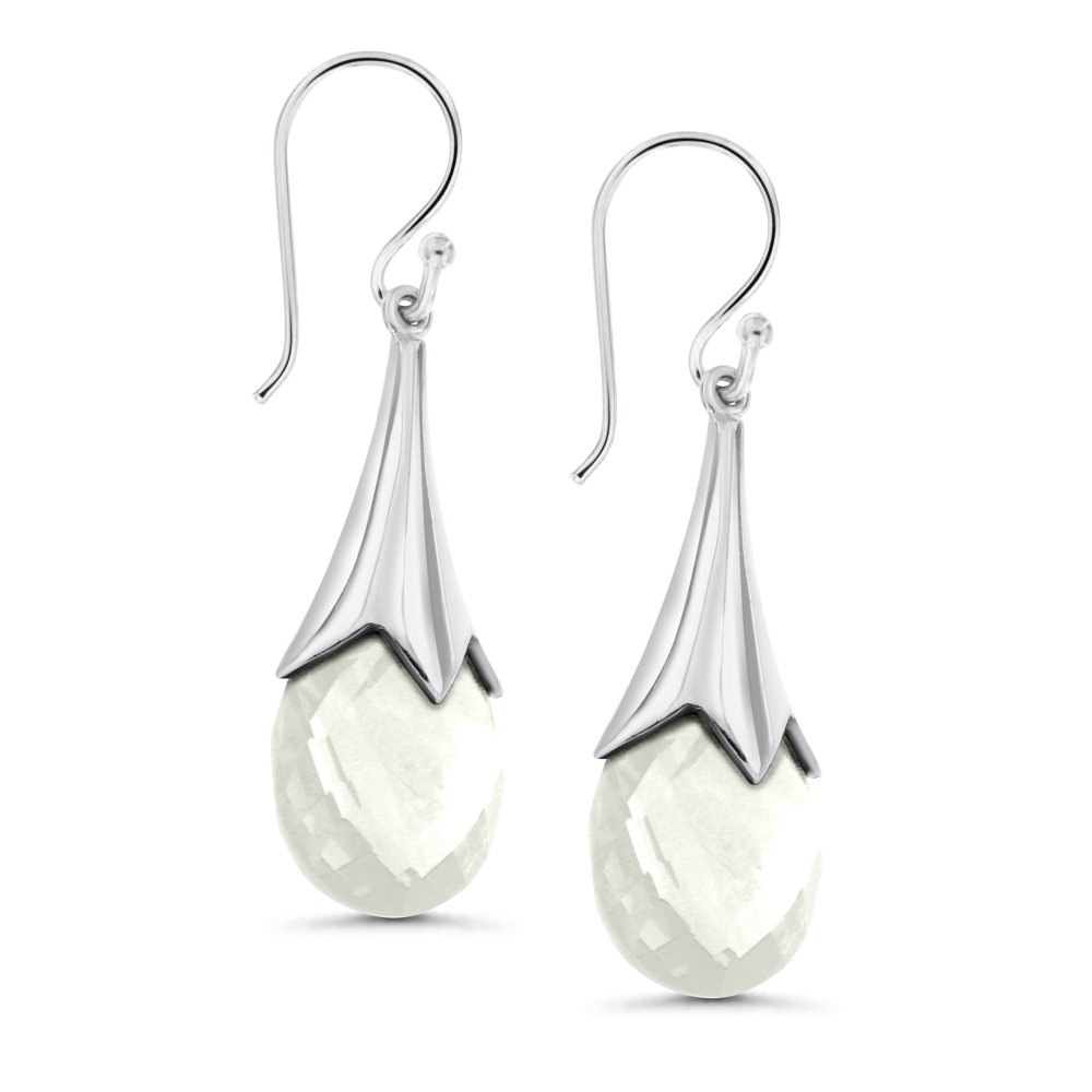 De zilveren oorhangers hebben facet geslepen edelstenen. De vorm van de edelsteen is druppelvormig met een afmeting van 18 x 12 mm.