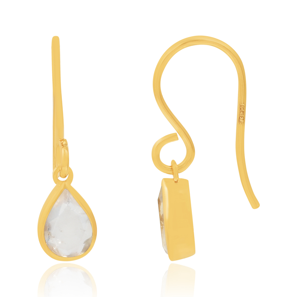 De 14 karaat gouden oorhangers hebben facet geslepen edelstenen. De vorm van de edestenen zijn druppel vormig met een afmeting van 7 x 5 mm.