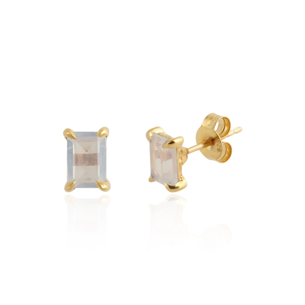 De 14 karaat gouden oorstekers hebben facet geslepen edelstenen. De vorm van de edesteen zijn rechthoekig met een afmeting van 7 x 5 mm.
