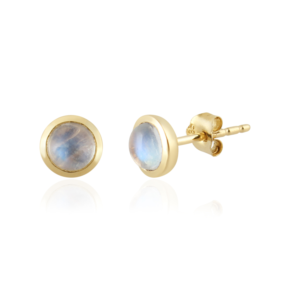 De 14 karaat gouden oorstekers hebben cabouchon geslepen edelstenen. De vorm van de edestenen zijn rond met een afmeting van 5 mm.