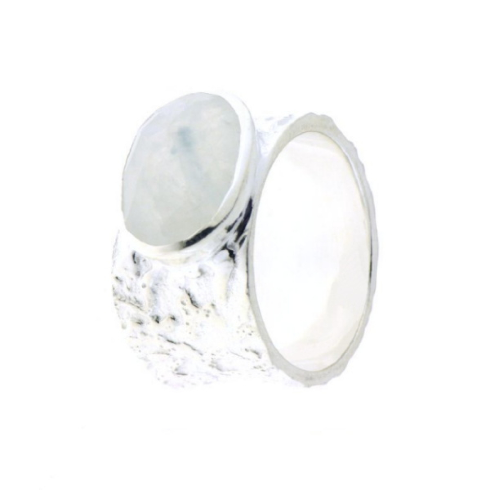 De zilveren ring heeft een facet geslepen edelsteen. De vorm van de edelsteen is ovaal met een afmeting van ongeveer 14 x 10 mm.