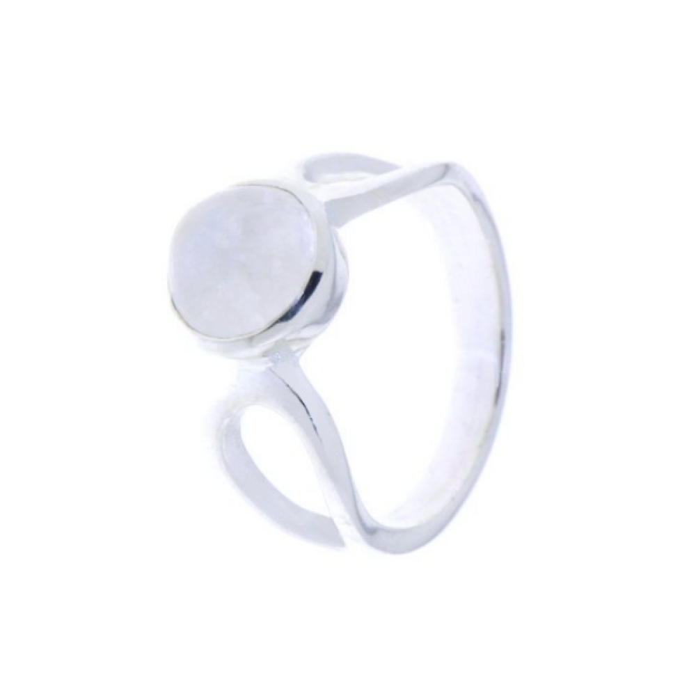 De zilveren ring heeft een cabouchon geslepen edelsteen. De vorm van de edelsteen is rond met een afmeting van 8 mm.