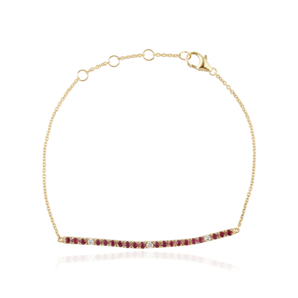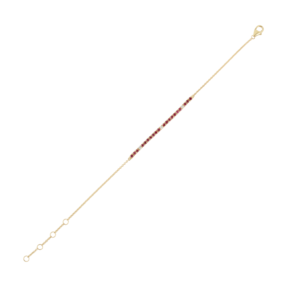 De 14 karaat gouden halve tennisarmband heeft facet geslepen edelstenen. De edelstenen zijn rond met een afmetingen van 1,8 mm. Er zijn 3 diamanten verwerkt in de armband. De armband heeft een verlengstuk van 3 cm en kan gesloten worden op 16, 17, 18 en 19 cm.