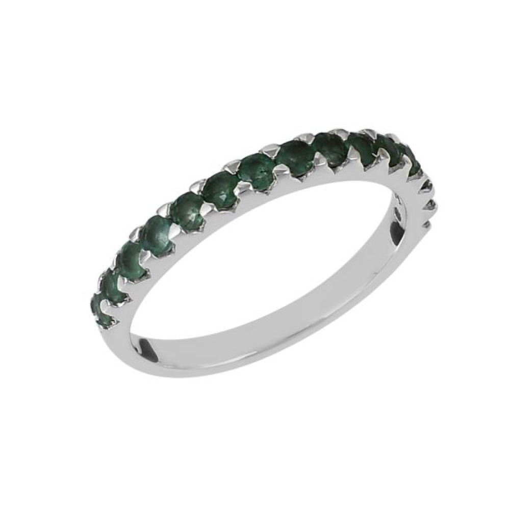 De zilveren ring heeft facet geslepen edelstenen. De vorm van de edelstenen zijn rond met een afmeting van 2 mm.