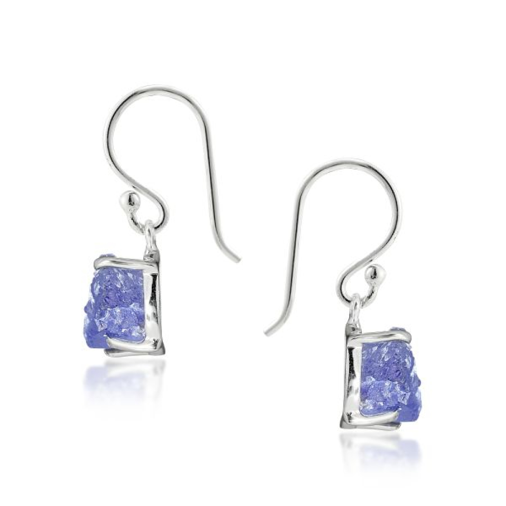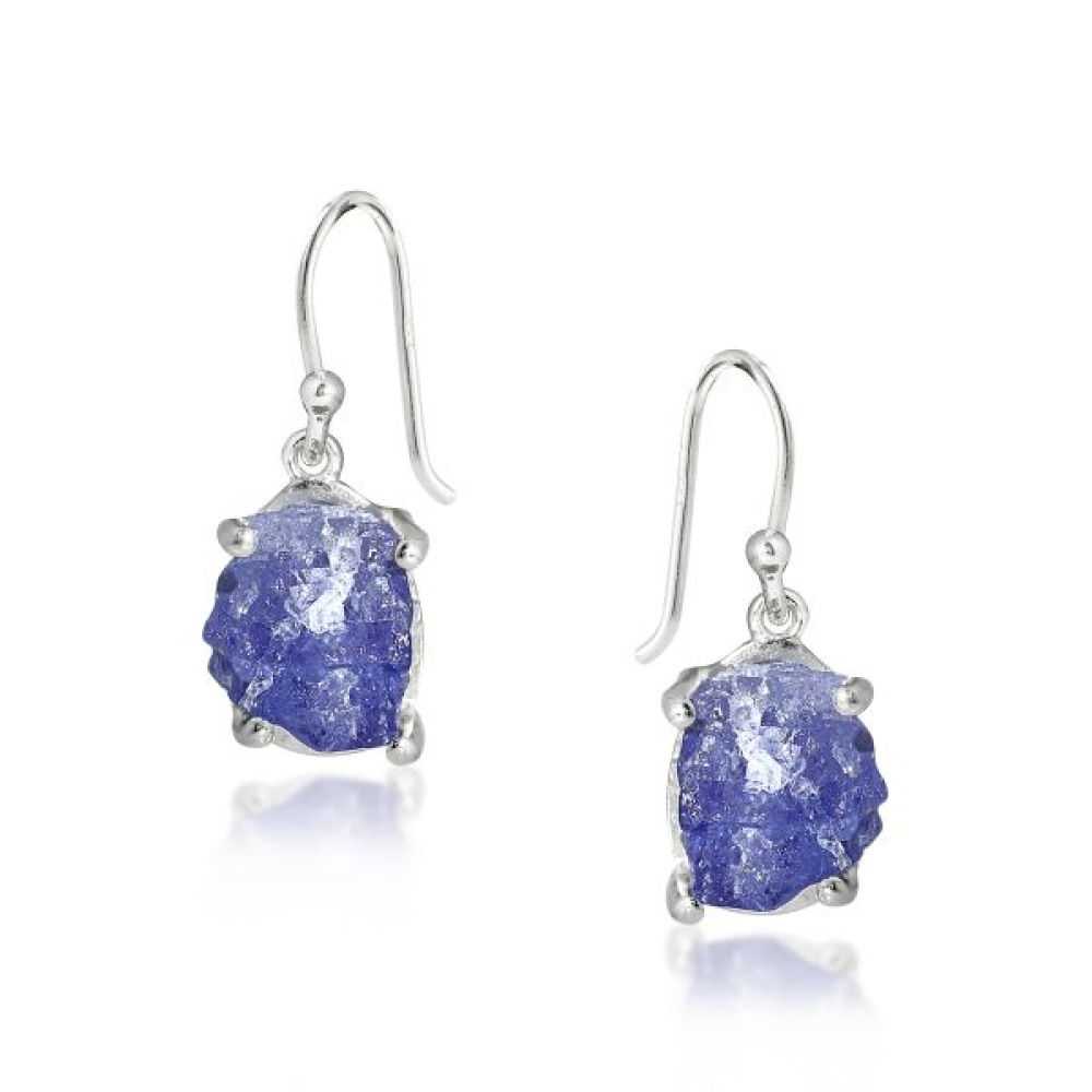 De zilveren oorhangers hebben ruwe edelstenen. De vorm van de edelsteen is ovaal met afmeting van 10 bij 8 mm.
