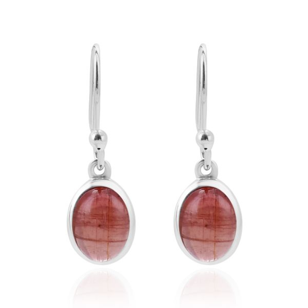 De zilveren oorhangers hebben cabouchon geslepen edelstenen. De vorm van de edelstenen zijn ovaal met een afmeting van 8 x 6 mm.